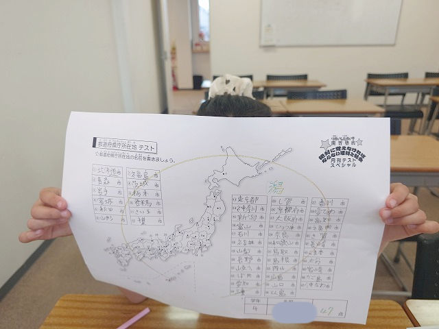 那加一小4年生Sさん、47都道府県テスト一発クリアです!!
