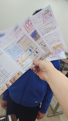 この子は、しょっちゅう満点連続3枚を持ってきてくれます。今回の社会で、国算理社全科目コンプリートしました!すごい!\(^_^)/