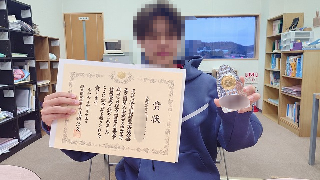 めっちゃ立派な賞状と置物でビックリ。多分その一部は俺の収めた○○○税でできてる!!